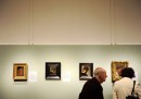 Uno dei tratti di queste delicatezze è che persino le opere d’arte antiche vengono protette da musei e proprietari perché le loro immagini non circolino troppo, e così nelle mostre – antiche o moderne o contemporanee – viene spesso concesso ai fotografi di raffigurare e diffondere solo immagini generali degli ambienti o contesti che non ritraggano esattamente le immagini originali, e le agenzie fotografiche quindi distribuiscono queste bizzarre inquadrature che diventano una categoria e una scelta artistica a loro volta: quadri visti da lontano, sale con quadri di sbieco, quadri in allestimento, persone davanti a quadri e opere d’arte, soprattutto. Le guardano, ci passano davanti, guardano da un’altra parte. A furia di vederne, si rimane più incuriositi dai soggetti e dal loro rapporto col contesto che non dall’opera stessa.