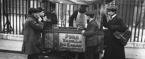 foto: un venditore di gelati a Londra, gennaio 1912. (Topical Press Agency/Getty Images)