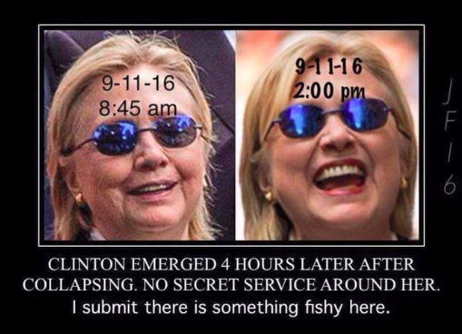 Hillary Clinton non è una politica particolarmente amata negli Stati Uniti: in molti (anche tra gli elettori Democratici) la vedono come una persona ambiziosa e poco trasparente e il suo malore di domenica ha fatto nascere (tra gli elettori più di destra) diverse teorie del complotto secondo cui in realtà Clinton stia nascondendo una malattia molto più grave della polmonite che ha poi detto di avere. Uno degli sviluppi di queste teorie complottiste è che la persona uscita a salutare sul marciapiede davanti a casa di Chelsea Clinton non fosse Hillary Clinton, ma una sosia usata per convincere gli elettori del buono stato della salute della candidata.