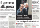 L'incontro fra Monti e Hollande, le tensioni in Egitto, mentre agli europei la parola di oggi è "biscotto"