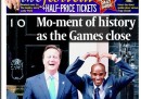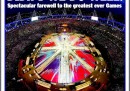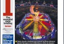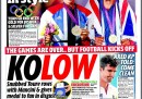 Quasi tutte le prime pagine dei giornali inglesi di oggi riportano la stessa foto: lo stadio Olimpico durante la cerimonia di chiusura dei Giochi illuminato con i colori della bandiera del Regno Unito. La prima edizione del Times – che ha realizzato le più belle prime pagine dedicate ai Giochi – presenta gli atleti impegnati a correre la Maratona con alle spalle il Parlamento britannico e il Big Ben, accompagnati dal titolo The road to Rio, La strada per Rio, a simboleggiare il passaggio di consegne tra Londra e Rio de Janeiro che ospiterà le prossime Olimpiadi nel 2016.