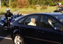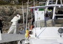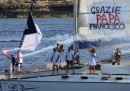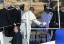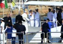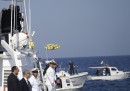Le foto della visita di Bergoglio e della corona di fiori gettata in mare per i migranti
