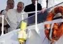 Papa Francesco è arrivato lunedì mattina nell’isola di Lampedusa, dopo aver lanciato in mare una corona di fiori in ricordo dei migranti morti cercando di arrivare sull’isola. Alle 10 ha tenuto una messa al campo sportivo, vicino al cimitero delle barche: nella sua omelia ha criticato la «cultura del benessere» che rende insensibili le persone ai problemi altrui e ha rivolto un pensiero «ai cari immigrati musulmani che, oggi, stasera, stanno iniziando il digiuno di Ramadan, con l’augurio di abbondanti frutti spirituali».