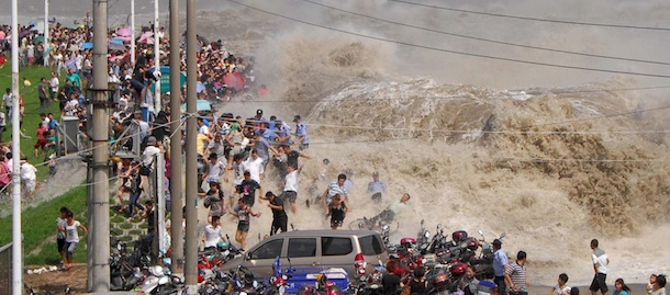 Le onde gigantesche nella baia di Qiantang