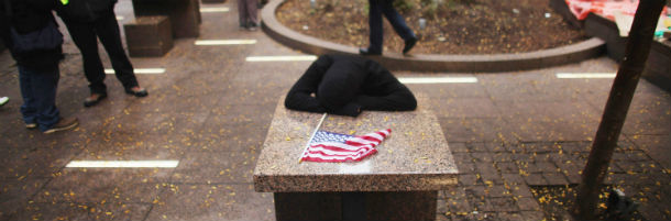 Dopo la decisione del tribunale di New York di riaprire al pubblico Zuccotti Park ma vietare ai manifestanti di accamparsi di nuovo con le tende, la protesta di Occupy Wall Street sembra essere entrata in una fase di stallo. Ieri sera diverse centinaia di manifestanti erano rientrati nel parco ma questa mattina ne sono rimasti solo qualche dozzina, sorvegliati a distanza da una trentina di poliziotti.
