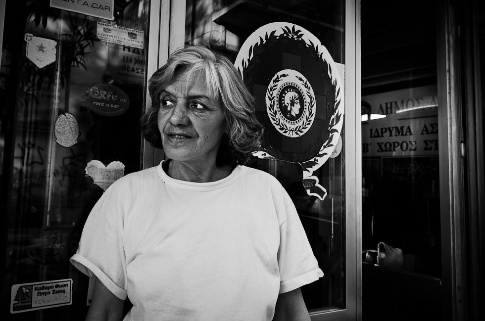 Vasiliki, infermiera / Capri Hotel Ha studiato e lavorato da infermiera. Dopo seri problemi di salute ha smesso di lavorare e non è più stata in grado di pagare i contributi. Ora riceve una pensione minima. Vive in questo hotel da 2 anni. Ha 54 anni.