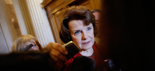 WASHINGTON, DC – APRIL 11: U.S. Sen. Barbara Feinstein (D-CA) speaks with reporters after the first vote on gun reform in the U.S. Senate at the U.S. Capitol April 11, 2013 in Washington, DC. The Senate voted to approve the procedural motion allowing further debate on the gun reform legislation pending before Congress and sought by the Obama administration. (Photo by Win McNamee/Getty Images)