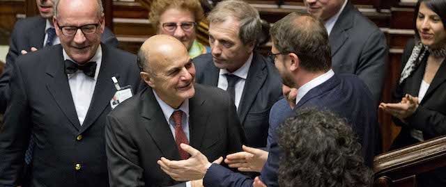 Martedì 25 febbraio il governo Renzi ha ottenuto la fiducia alla Camera con 378 favorevoli, 220 contrari, un astenuto. Dal punto di vista fotografico ci sono stati due momenti particolarmente interessanti e cercati: il ritorno in aula di Bersani dopo il grave malore di gennaio, e quello dell’ex presidente del Consiglio Enrico Letta. E poi il solito: facce sonnacchiose qua e là, qualcuno che ascolta attento, qualcun altro che gioca con l’iPad.