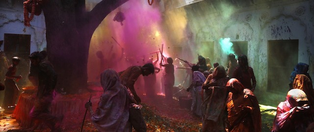 Il 10 marzo nello stato settentrionale indiano dello Uttar Pradesh si è festeggiato Lathmar Holi, in particolare nei villaggi di Barsana e Nandgaon: secondo la tradizione, il dio Krishna – del villaggio di Nandgaon – fece visita alla sua amata Radha a Barsana, ma una volta arrivato prese in giro lei e le sue amiche, offendendole e venendo così cacciato. Per questo motivo durante la festa gli uomini di Nandgaon vanno a pregare nel tempio di Radha a Barsana, dove vengono ricoperti di vernici colorate dagli uomini della città e picchiati con bastoni dalle donne, mentre tutt’intorno gli abitanti del villaggio si lanciano polveri colorate, cantano e ballano.