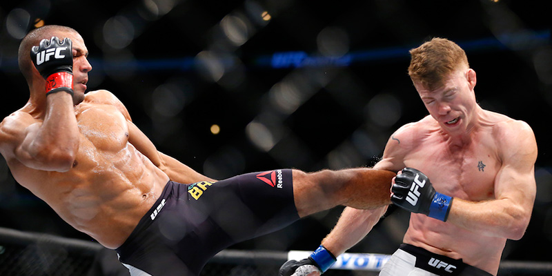 Edson Barboza e Paul Felder sono due lottatori di arti marziali miste, una disciplina che si definisce a “contatto pieno”, cioè ci si può colpire con pugni, gomitate, ginocchiate e calci. Le arti marziali miste sono un’evoluzione del vale tudo, un tipo di combattimento sportivo che si è diffuso in Brasile nei primi anni del Novecento. Barbosa e Felder pesano circa settanta chili e sono dei pesi leggeri. Si sono sfidati il 25 luglio a Chicago: Felder, che ha 31 anni, ha perso il primo combattimento della sua carriera. Il vincitore Barbosa ha terminato l’incontro con un “bernoccolo grande come una palla da golf sull’occhio destro”. Felder aveva invece un evidente ematoma su una costola causato da uno dei molti (leciti) calci che ha ricevuto da Felder. Anche il difensore del Milan Philippe Mexes ha preso un calcio dal suo allenatore Siniša Mihajlović, ma in quel caso nessun livido: Mihajlović scherzava, dopo che Mexes aveva segnato il gol con cui il Milan ha vinto il primo (estivo) derby dell’anno.
