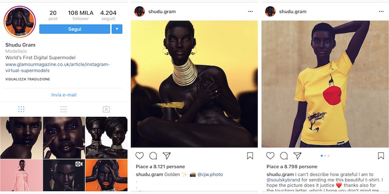 Le tecnologie di grafica digitale permettono di creare immagini talmente sofisticate che molte persone scambiano Shudu, una modella con la pelle nera che ha 108mila follower su Instagram, per una donna vera. Come altre modelle molto popolari sul social network, come ad esempio Lilmiquela, non lo è: è stata creata dal fotografo britannico Cameron-James Wilson usando il software per la creazione di effetti speciali Daz 3D.