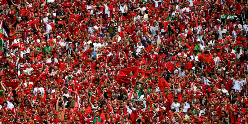 Fotografati sugli spalti, con la maglietta della squadra a cui tengono, i tifosi dei Mondiali di calcio formano una serie di pattern di umani, in cui la prima cosa che salta all’occhio è il colore della maglietta che indossano, o delle mani che alzano al cielo. Se siete molto bravi saprete distinguere i tifosi di Svezia, Brasile, Australia e Colombia dalle diverse sfumature di giallo delle loro maglie, o quelli di Giappone e Islanda per i diversi tipi di blu.