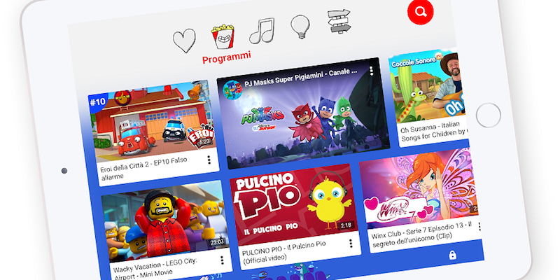 Da oggi è disponibile anche in Italia YouTube Kids, una versione di YouTube disponibile come app sia su Google Play che sull’App Store pensata per i bambini. Permette infatti di vedere solo i contenuti indicati come adatti ai bambini, e ha una serie di funzioni per permettere ai genitori di controllare il più possibile ciò che i loro figli guardano. Con l’app di YouTube Kids i genitori possono bloccare video e canali che ritengono poco adatti ai propri figli, controllare la cronologia dei video guardati, limitare il numero di video raggiungibili usando il motore di ricerca dell’app e impostare un timer per limitare il tempo che i figli passano davanti all’app.
