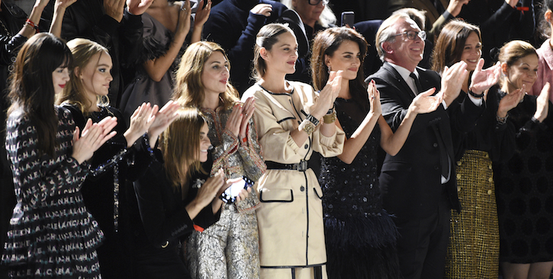 Come al solito la sfilata è stata scenografica e con molti personaggi famosi tra gli ospiti, tra cui le attrici Penelope Cruz, Julianne Moore e Marion Cotillard, la modella Lily-Rose Depp, la regista Sofia Coppola. Come accaduto all’ultima sfilata di Chanel, quella della collezione per la primavera/estate 2019 presentata a ottobre a Parigi, Lagerfeld si è fatto vedere in passerella insieme al nipote e a Virginie Viard, direttrice dello studio di Chanel, suo braccio destro e considerata la persona che prenderà probabilmente il suo posto.