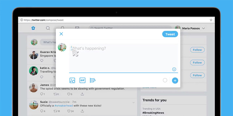 La principale differenza è la scomparsa dell’impostazione a tre colonne, che per alcuni creava confusione, con una versione a due sole colonne molto più ordinata e pulita. Twitter ha aggiunto diversi accorgimenti per inviare facilmente i messaggi, comprese nuove scorciatoie da tastiera che possono essere attivate senza l’utilizzo del mouse. C’è anche un tasto vistoso per inserire con più facilità gli emoji, mentre nella colonna di destra sono raccolte informazioni sugli hashtag più utilizzati nella giornata e la classica sezione con i suggerimenti su chi seguire.