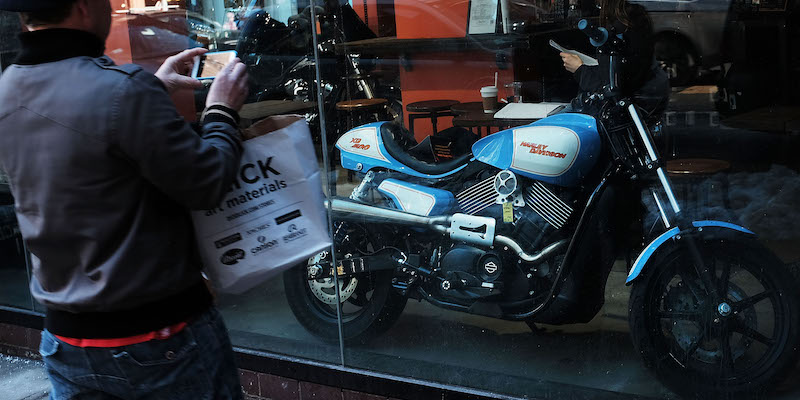 Gli ultimi dati sulle vendite di motociclette Harley-Davidson in Nord America hanno indicato l’ennesimo calo per la storica azienda di Milwaukee: le vendite sono diminuite per l’ottavo quadrimestre consecutivo. Dal 2014 a oggi l’azienda è passata da circa 260 mila unità vendute in tutto il mondo in un anno a circa 210 mila. Una delle conseguenze è che cinque anni fa un’azione di Harley-Davidson alla borsa di New York costava 72,68 dollari; oggi ne vale poco più di 36. Solo nell’ultimo anno il prezzo delle sue azioni è calato del 21 per cento.