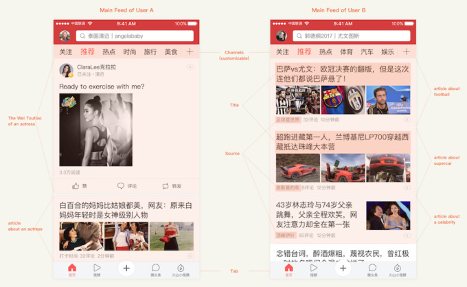 Il prodotto di maggior successo in Cina di ByteDance non è comunque Douyin, ma un’altra app che si chiama “Toutiao” (letteralmente “titoli”), nata in origine come aggregatore di notizie. L’app ha subìto più evoluzioni, diventando ora un grande contenitore all’interno del quale si trovano notizie, fotografie, video e contenuti realizzati direttamente dagli utenti. I sistemi di intelligenza artificiale sviluppati da ByteDance sono usati per personalizzare il flusso di informazioni che vede ogni utente, in un modo analogo a quello dei video su TikTok. L’applicazione è molto utilizzata e produce notevoli ricavi grazie alle pubblicità che sono mostrate nei suoi spazi.