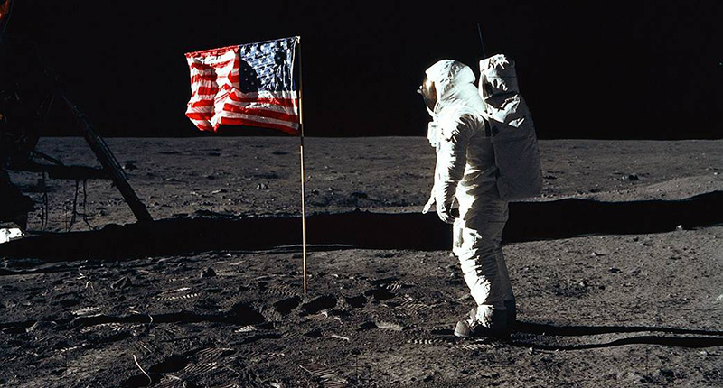 Qualche minuto dopo essere scesi sulla Luna il 21 luglio 1969, gli astronauti statunitensi Neil Armstrong e Buzz Aldrin della missione Apollo 11 piantarono sulla superficie lunare la bandiera degli Stati Uniti, in quello che divenne uno dei momenti più famosi dell’esplorazione spaziale. Quella usata dagli astronauti fu la prima di sei bandiere disegnate e prodotte da un team di esperti appositamente per quella e per le successive missioni della NASA sulla Luna.