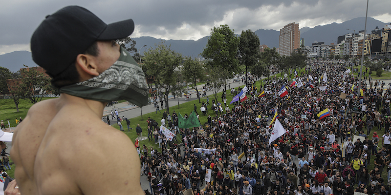 Il presidente colombiano Iván Duque ha detto che l’esercito verrà impiegato con compiti di polizia per mantenere l’ordine durante le proteste antigovernative iniziate giovedì a Bogotà. Dopo che le proteste erano iniziate pacificamente, con una manifestazione a cui avevano partecipato circa 250.000 persone, sono cominciati scontri con la polizia che si sono trascinati fino a venerdì e sabato. Le proteste sono indirizzate a una possibile riforma delle leggi sul lavoro e sulle pensioni – che il governo ha per ora detto di non voler approvare –, alla corruzione nel governo e al fallimento dell’accordo di pace con le FARC. Duque ha detto che l’esercito aiuterà la polizia nel pattugliamento delle strade per impedire atti di vandalismo e saccheggi.