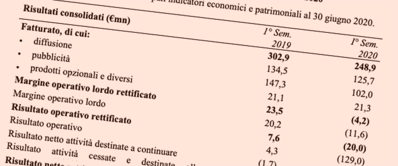 L’effetto Covid si fa sentire anche sui conti di Gedi. La diffusione del virus – spiega una nota del gruppo editoriale – ha “notevolmente impattato” sui risultati ma tale impatto è stato in gran parte assorbito dagli interventi sui costi. Sui risultati di oggi incidono in maniera decisiva anche 101,6 milioni di svalutazioni ed altre componenti non ordinarie, portando così la perdita nel primo semestre a 120,5 milioni di euro.