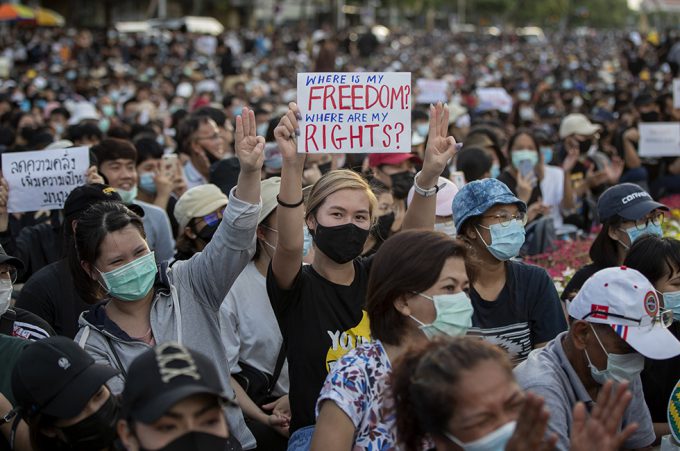 Manifestazione a favore della democrazia, Bangkok, 16 agosto 2020 (AP Photo/Gemunu Amarasinghe)