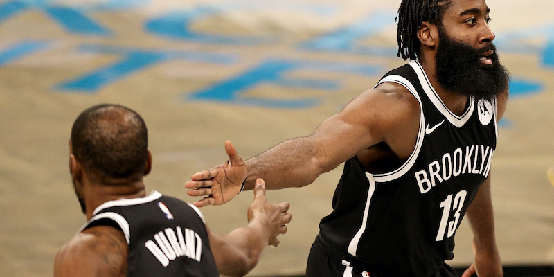A completare la trasformazione in una squadra altamente competitiva, lo scorso gennaio Brooklyn ha costruito un intricato sistema di scambi di giocatori e scelte ai draft per assicurarsi James Harden, il miglior giocatore offensivo del campionato. Per averlo, Brooklyn ha rinunciato a rinnovare la propria rosa con i migliori giovani fino al 2027 per provare a vincere subito e costruirsi un’identità attorno al trio. Ora, a stagione inoltrata e dopo un inizio altalenante, il nuovo allenatore Steve Nash — insieme ai suoi due famosi assistenti, l’espertissimo Mike D’Antoni e l’ex giocatore Amar’e Stoudemire — pare abbia trovato il modo per far funzionare al meglio una squadra dal grandissimo potenziale offensivo, che in tanti si aspettano di vedere alle finali.