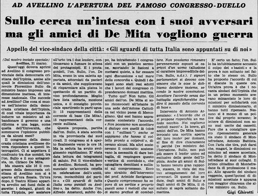 Il comunista avellinese Federico Biondi descriveva così l’apporto di Sullo alla DC locale:
