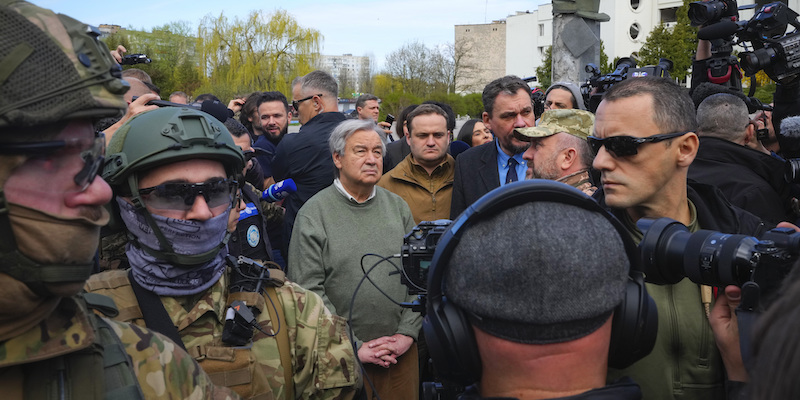 Guterres si trova a Kiev per incontrare il presidente ucraino Volodymyr Zelensky, con cui nel pomeriggio aveva tenuto una conferenza stampa congiunta. Nei giorni scorsi Guterres era invece stato in Russia, dove aveva incontrato il presidente russo Vladimir Putin e il ministro degli Esteri Sergei Lavrov, senza ottenere alcun risultato concreto dal punto di vista diplomatico.