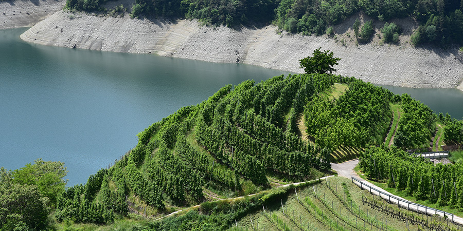 Un meleto sopra il lago di Santa Giustina a Cles (Claudio Caprara/Il Post)