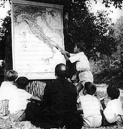 La scuola di Barbiana era iniziata in un paio di stanze della canonica e poi d’estate si faceva fuori, sotto il pergolato. Era sempre aperta, tutto l’anno, tutto il giorno. L’insegnamento religioso non aveva nulla di ortodosso e l’obiettivo non era selezionare, ma far arrivare tutti. Si facevano lezioni di recitazione per far superare le timidezze, era stata costruita una piccola piscina per affrontare la paura dell’acqua, ed era stata abolita ogni forma di punizione corporale, all’epoca ammessa nella scuola pubblica.