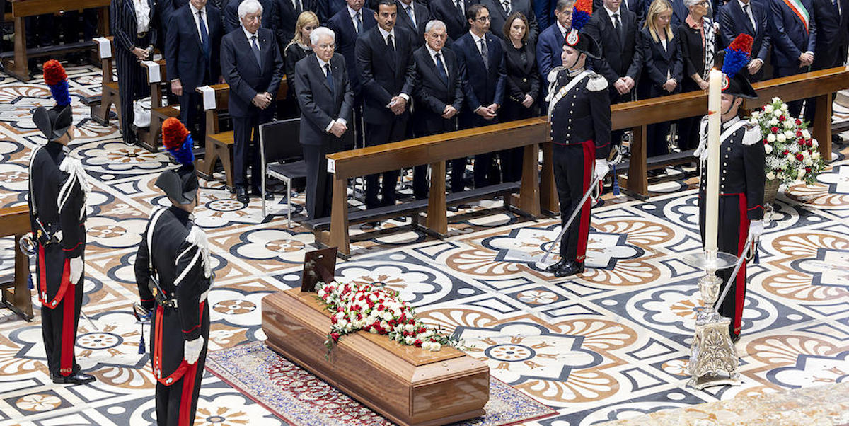 Tra i politici presenti al funerale c’erano il presidente della Repubblica Sergio Mattarella, la presidente del Consiglio Giorgia Meloni e gran parte dei membri del governo. Tra i rappresentanti dell’opposizione c’erano la segretaria del PD Elly Schlein e il leader di Azione Carlo Calenda, mentre non è andato Giuseppe Conte, capo del Movimento 5 Stelle.