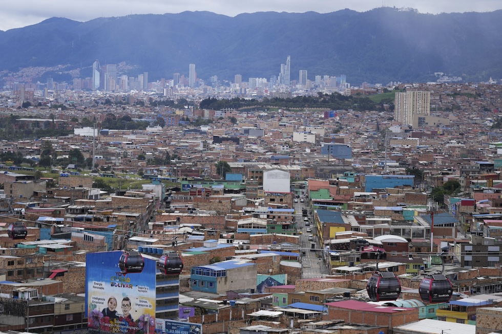 La città di Bogotà e il sistema di cabinovie del quartiere Ciudad Bolivar (AP Photo/Fernando Vergara, File)