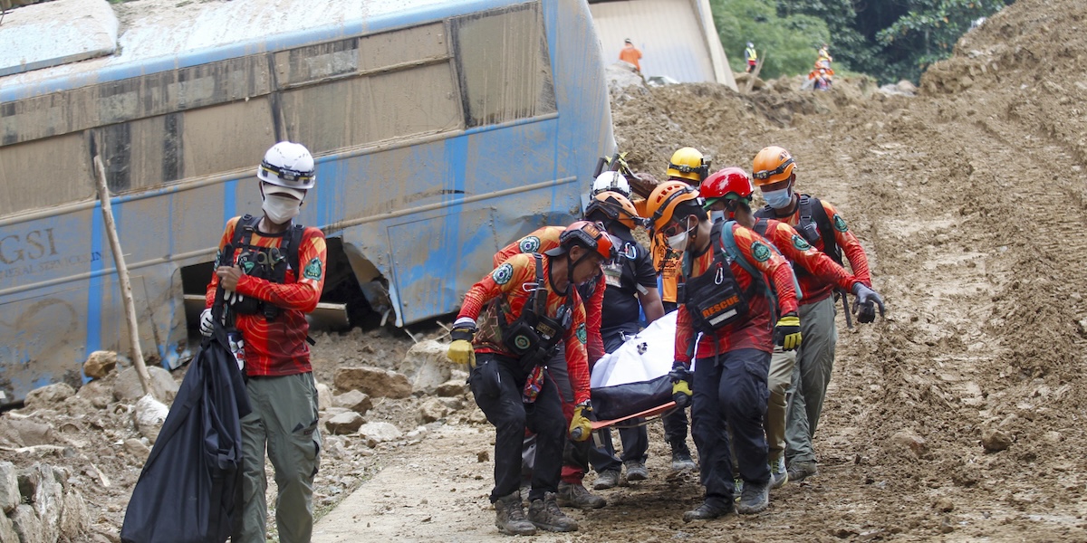 La frana aveva travolto case e veicoli che in quel momento trasportavano i dipendenti della società: nei giorni successivi diverse squadre di soccorritori, oltre 300 in tutto, hanno lavorato per estrarre le persone sopravvissute e i corpi dei morti, e sono tuttora al lavoro. Le operazioni sono state ostacolate dalle forti piogge, dal fango molto compatto e dalla minaccia di ulteriori frane. Per ora i dispersi sono 63, ma le possibilità che siano trovati vivi sono sempre più basse.