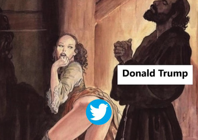 Alcune ore dopo ha pubblicato un tweet per commentare scherzosamente il ritorno di Donald Trump sul social network e il “pericolo” che possa ricominciare a twittare di continuo come faceva prima della sospensione. Nel tweet Musk ha usato un disegno di Milo Manara, fumettista e disegnatore italiano noto soprattutto per i suoi lavori di carattere erotico: nel disegno si vede una ragazza seminuda con il logo di Twitter che le copre il fondoschiena e un frate raccolto in preghiera con sopra la scritta “Donald Trump”. Il tweet è accompagnato dalla frase del Padre Nostro “E non ci indurre in tentazioni”.