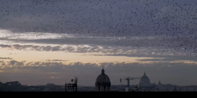 Come ogni anno, nei mesi tra ottobre e febbraio a Roma si possono vedere quasi ogni giorno, per circa mezz’ora, dei grossi gruppi di piccoli uccelli che volano in cielo tutti insieme: sono gli storni, degli uccelli migratori di cui al mondo esistono circa 200 milioni di esemplari, e le complesse e bellissime coreografie che disegnano nel cielo si chiamano “mormorii”. Benché a Roma sia uno spettacolo stagionale, la danza che gli storni compiono forse per decidere insieme dove riposare per la notte, forse per tenere alla larga i predatori, è sempre molto amata e fotografata.