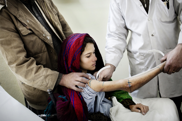 Jamaloo venne trasferita all’ospedale di Emergency, dove fu curata per due settimane, e poi fu portata al centro di riabilitazione della Croce Rossa Internazionale di Kabul. È lì che l’ha incontrata lo scorso febbraio Franco Pagetti. Pagetti è un grande fotografo di guerra, che ha vissuto gli ultimi anni a Bagdad lavorando per Time e nei mesi scorsi ha fotografato invece la guerra in Afghanistan. Jamaloo era al centro da sei mesi (lo lascerà alla fine di febbraio), sempre accompagnata e vegliata da suo zio.
