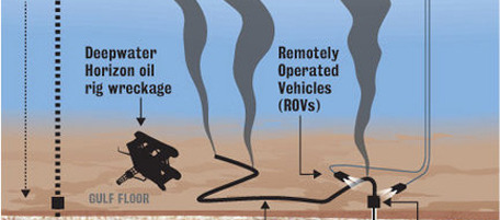 Con uno schema molto chiaro, il giornale mostra le condizioni del sito dove è avvenuto l’incidente. In superficie è arrivata la Development Driller III, una piattaforma mobile che avrà probabilmente il compito di creare un nuovo pozzo per arrestare la perdita di petrolio. A circa 1.500 metri di profondità si trovano invece i rottami della piattaforma esplosa lo scorso 20 aprile. Si stima che da allora ogni giorno si siano riversati in mare almeno 5mila barili di petrolio.