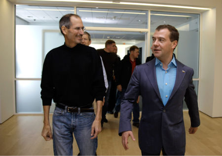 Nel corso della sua visita, Medvedev non ha incontrato solamente i fondatori di Twitter, ma anche alcuni responsabili di Cisco, uno dei più grandi produttori al mondo di dispositivi per le reti, e Steve Jobs. Una foto con il CEO di Apple è stata prontamente condivisa sempre attraverso il profilo del presidente russo sul social network.