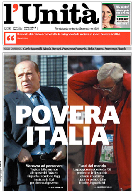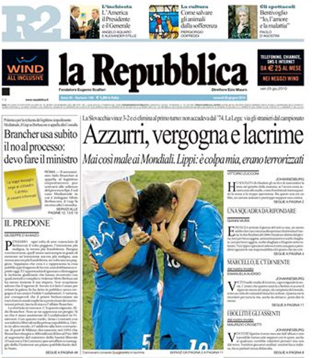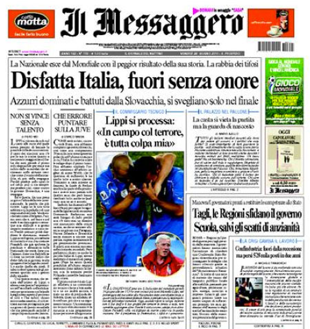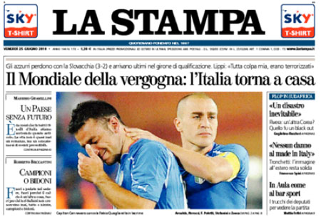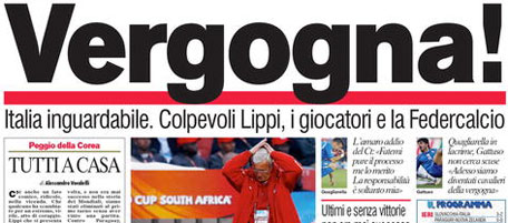 Le prime pagine dei giornali sull'eliminazione della Nazionale