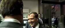 Il presidente russo Dimitri Medvedev incontra il governatore della California Arnold Schwarzenegger. Il saluto tra i due è molto informale e Medvedev non rinuncia a una citazione da Terminator 2.