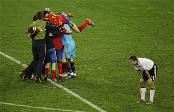 Si el fútbol es un depósito de sentimientos, España es una gozada . Si el fútbol es arte y épica, España es el equipo a seguir. En su partido frente a la temible y deslumbrante Alemania lo tuvo todo, fue sublime en el juego y también supo remangarse cuando fue preciso. Gobernó de etiqueta y con jerarquía a una selección que parecía inabordable, por su presente y su heráldico pasado. El conjunto de Del Bosque lo hizo como es él, con su forro más auténtico, fiel a la pelota, con ese delicioso punto de descaro que define a este grupo de desacomplejados futbolistas que han desterrado el escepticismo crónico que despertaba España en un fútbol vertebrado en torno a los clubes. Hoy España es un equipo, el equipo de España, sin banderas ni las ventajistas demagogias de un pasado tenebroso. Lo que parecía una quimera es una realidad. La selección está en una final del Campeonato del Mundo, a un paso de la ensoñación definitiva. Del descorche se encargó Puyol: un gol racial para abrochar un partido operístico. Un tanto que se narrará de generación en generación con la emoción que merece, con voces entrecortadas. Una leyenda imperecedera para una selección con tanto linaje que el próximo domingo se medirá en la cima del mundo a Holanda. El sueño continúa.