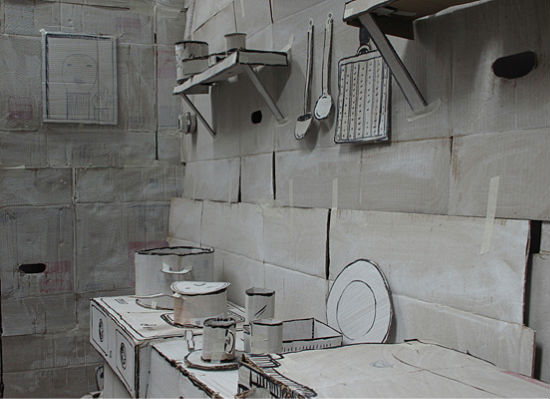 Gli oggetti nelle immagini sono creati da Luise Valdes (nome d’arte di Don Lucho), artista cileno, usando una combinazione di cartoni della pizza, scatoloni da imballaggio, carta e pittura. Il progetto è una riproduzione a grandezza naturale dell’appartamento in cui Valdes vive. Tutti gli elementi compositivi sono stati dipinti di bianco per conferire allo spazio l’aspetto surreale di un disegno uscito dal foglio.