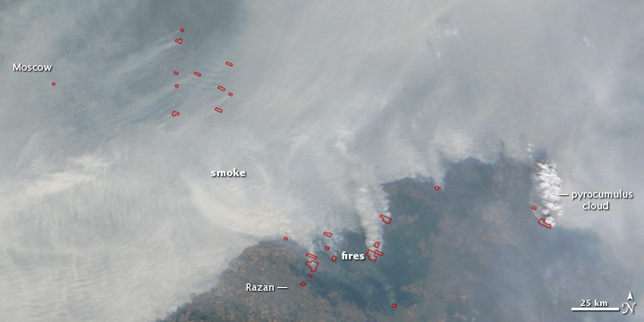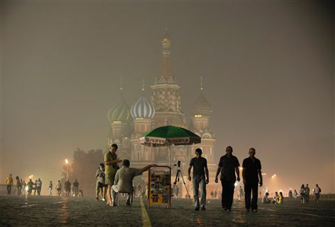 Negli ultimi sette giorni il clima secco e le alte temperature – in Russia non si registravano dei livelli così elevati da oltre cento anni – hanno scatenato oltre mille incendi nelle regioni centro-occidentali del paese. A Mosca il tasso di mortalità nel mese di luglio è cresciuto del 30% a causa del fumo e del caldo prolungato. Le autorità hanno invitato i moscoviti a rimanere a casa e non avventurarsi per le strade della città. L’aria si respira con difficoltà e il fumo ha anche raggiunto i tunnel sotterranei della metropolitana.