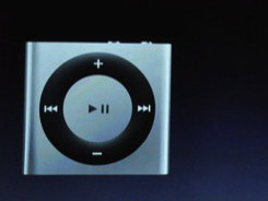19,22. Il nuovo iPod shuffle è un quadratino, come quello di seconda generazione, ma più piccolo ancora. 15 ore di musica. 5 colori. 49 dollari, 2 gigabyte.