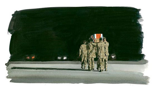 Ha iniziato nel 2003, quando il Times gli chiese per la prima volta di andare a seguire l’invasione dell’Iraq come “artista di guerra”. Lui scannerizzava i suoi disegni e li mandava via mail alla redazione. Al suo rientro si arruolò nel Territorial Army – la sezione dell’esercito britannico costituita in gran parte da militari arruolati part time, che fruiscono di un livello di retribuzione pari agli effettivi solo quando sono impegnati in attività militari – e fu inviato per sei mesi in missione a Basra, in Iraq. Nel 2006 fu inviato in Afghanistan, dove è tornato altre due volte. L’anno scorso il Ministero della Difesa gli ha dedicato una mostra a Londra, un’altra è stata appena inaugurata dalla National Army Museum. Quando non è in missione, Matthew Cook lavora come illustratore a Londra.