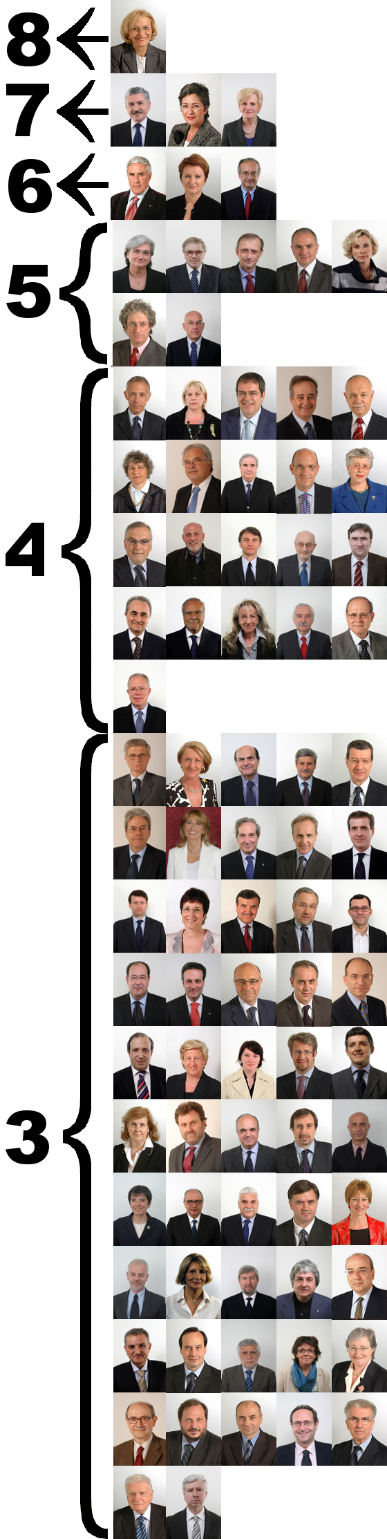 L’applicazione dell’articolo dello Statuto è stata finora elusa dal Partito Democratico, o con argomenti logicamente implausibili – “tre mandati sono quindici anni”, dice arditamente qualcuno – o con la semplice indifferenza o con il ricorso alla validità di alcune deroghe previste dallo Statuto e interpretate in forma assai estensiva. Così, qualcuno si è messo a fare i conti di quanti siano i parlamentari del PD in condizioni di violazione dello Statuto. Il blog Metilparaben ha esaminato i margini di deroga previsti e aiutandosi con i conti fatti dal PD Nuovo percorso di Padova sono arrivati a uno schema illuminante.