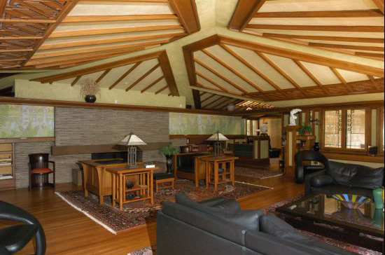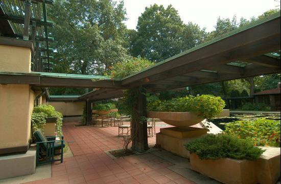 Nella Coonley House, che Wright descrive come il suo progetto più riuscito, egli portò l’intera zona giorno al piano superiore, dove una straordinaria serie di stanze costruite come padiglioni, protette dalle superfici elegantemente ripiegate del tetto, erano disposte in modo che la signora Coonley potesse incontrare i suoi pazienti cristiano-scientisiti in privato: Poiché la signora Coonley era molto interessata alle novità nel campo dell’educazione, Wright progettò una cassetta per i giochi dei bambini eun kindergarten, pensati come nuovo tipo di centro culturale e sociale per le periferie americane