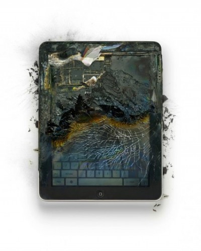 Le immagini nascono da una collaborazione tra l’artista Michael Tompert ed il fotografo Paul Fairchild. C’era già chi aveva provato a frullare i prodotti Apple: Tompert sceglie altri metodi, e Fairchild fotografa il risultato. Tra gli oggetti distrutti iPad, iPhone, Macbook e iPod.
