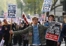 I manifestanti si sono concentrati soprattutto a Whitehall, la strada di Londra che porta verso la piazza del parlamento. Diversi gruppi di manifestanti, a volto coperto, hanno tentato più volte di sfondare il cordone dei poliziotti, senza riuscirci. Poi ci sono anche un sacco di studenti che protestano pacificamente. Migliaia di questi hanno sfilato in vari cortei in tutto il paese, oggi: a Manchester, Liverpool, Sheffield, Bristol, Southampton, Oxford, Cambridge, Leeds, Newcastle, Bournemouth, Cardiff, Glasgow e Edimburgo.
