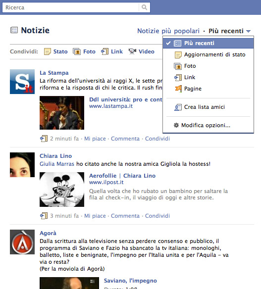 Cesare condivide un video divertente, Augusto segnala un sito che ti consente di personalizzare i tuoi profili, Tiberio pubblica un messaggio attraverso Twitter e Flavio condivide alcune fotografie della sua festa di compleanno. Quello i nostri amici condividono o commentano ci passa ogni giorno davanti agli occhi nella pagina principale di Facebook attraverso un flusso continuo di informazioni e dettagli nel quale è spesso facile perdersi. Per fare ordine, i responsabili del social network hanno deciso di aggiungere alcuni nuovi filtri alla sezione “Notizie”.